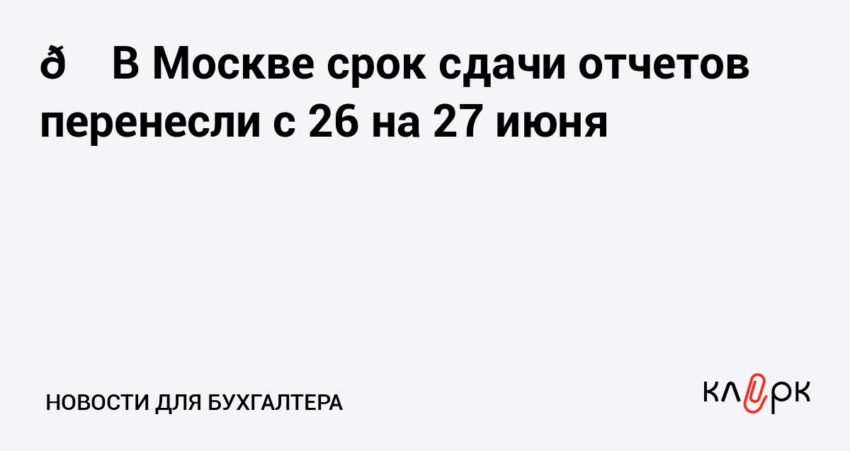 📅 В Москве срок сдачи отчетов перенесли с 26 на 27 июня
