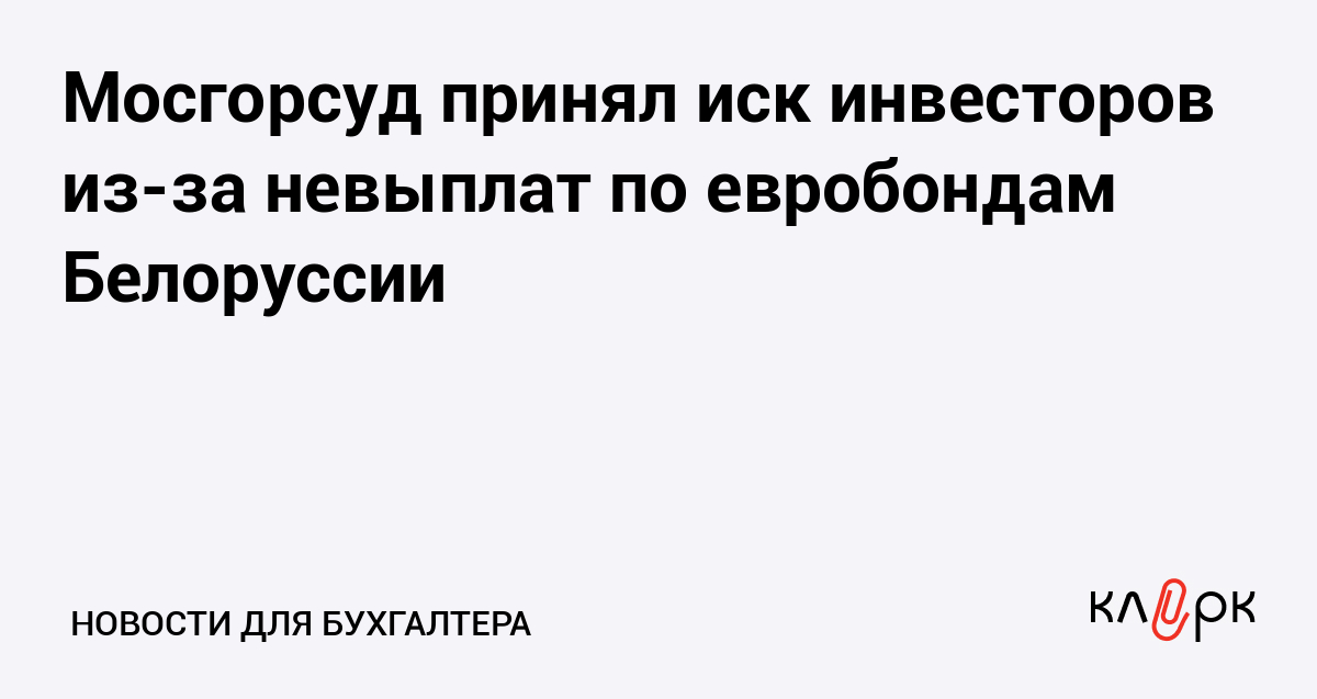 Мосгорсуд принял иск инвесторов из-за невыплат по евробондам Белоруссии