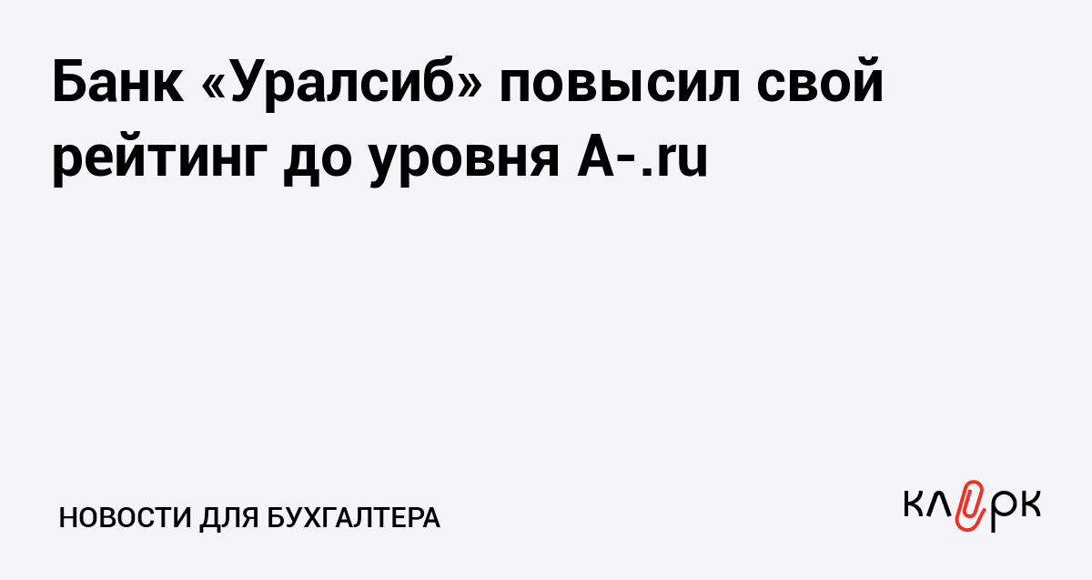 Банк «Уралсиб» повысил свой рейтинг до уровня A-.ru