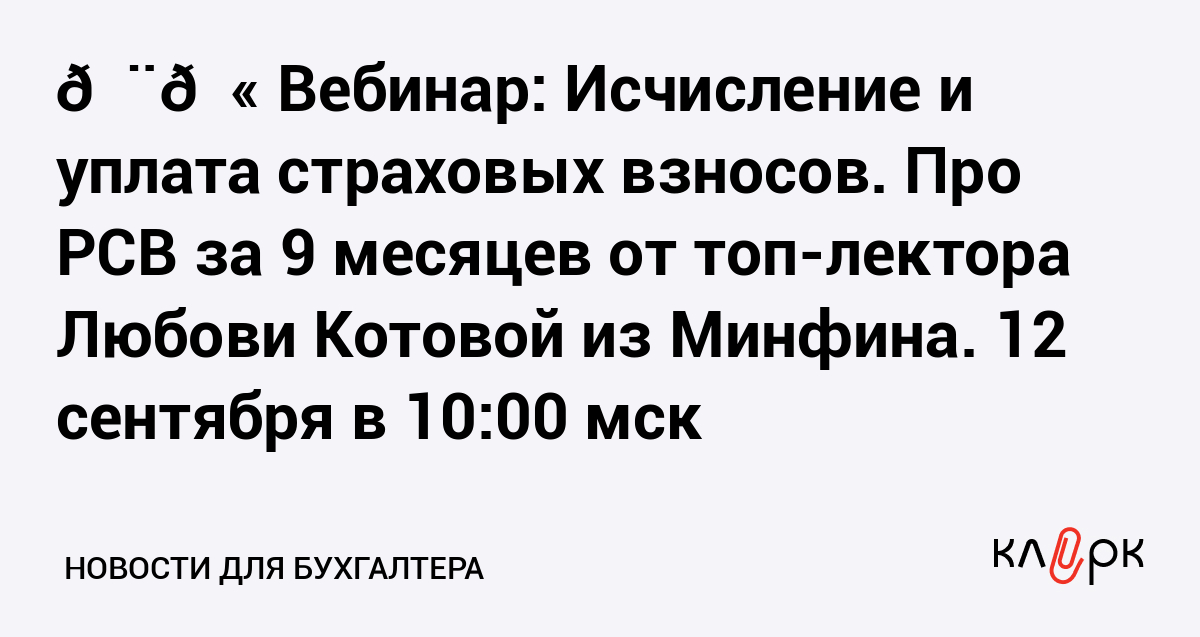 👨🏫 Вебинар: Исчисление и уплата страховых взносов. Про РСВ за 9 месяцев от топ-лектора Любови Котовой из Минфина. 12 сентября в 10:00 мск