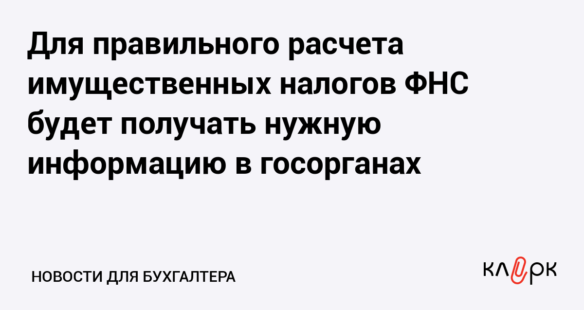Для правильного расчета имущественных налогов ФНС будет получать нужную информацию в госорганах