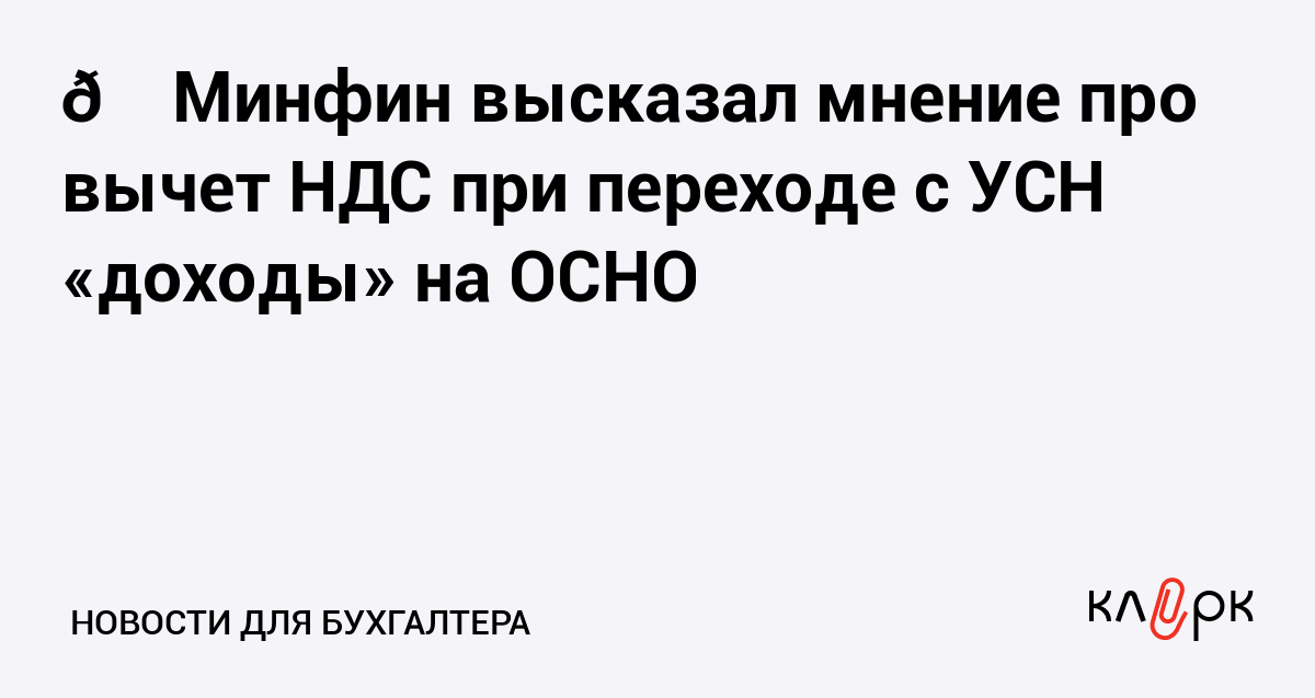 👉 Минфин высказал мнение про вычет НДС при переходе с УСН «доходы» на ОСНО