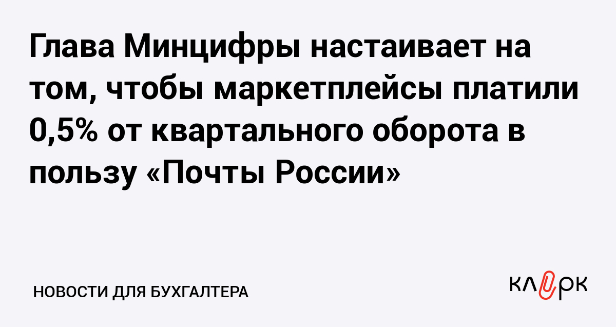 Глава Минцифры настаивает на том, чтобы маркетплейсы платили 0,5% от квартального оборота в пользу «Почты России»
