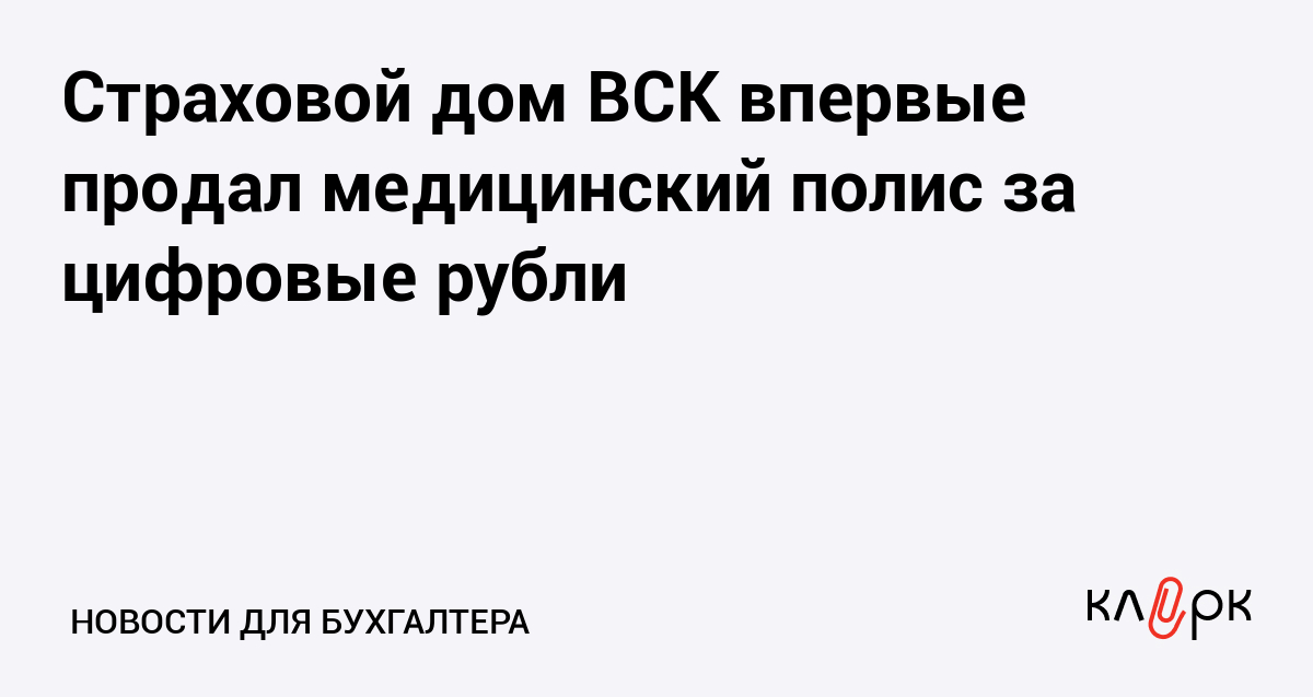 Страховой дом ВСК впервые продал медицинский полис за цифровые рубли