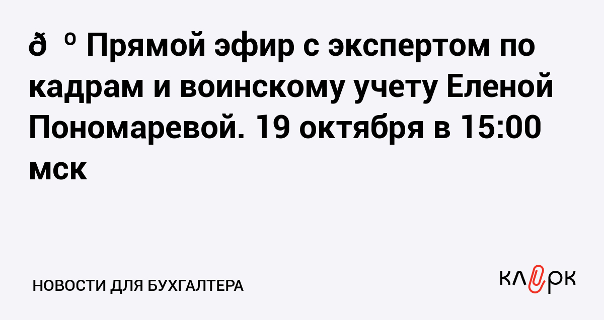 📺 Прямой эфир с экспертом по кадрам и воинскому учету Еленой Пономаревой. 19 октября в 15:00 мск