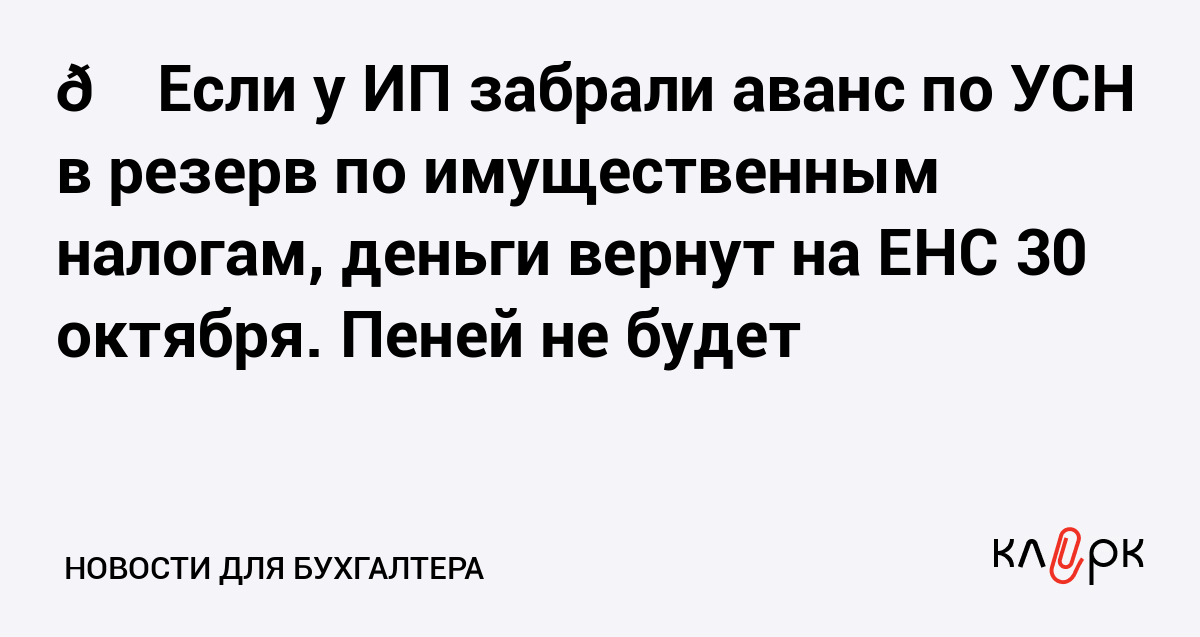 👈 Если у ИП забрали аванс по УСН в резерв по имущественным налогам, деньги вернут на ЕНС 30 октября. Пеней не будет