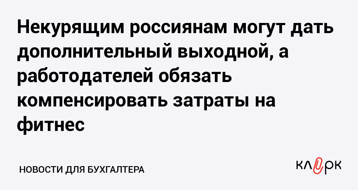 Некурящим россиянам могут дать дополнительный выходной, а работодателей обязать компенсировать затраты на фитнес