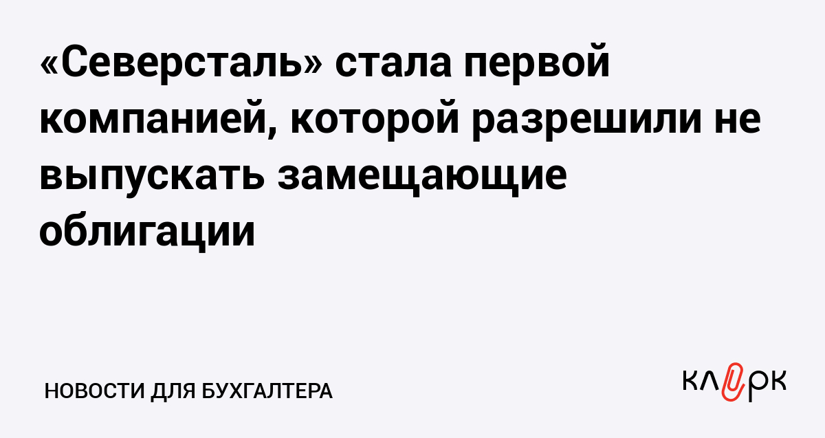 «Северсталь» стала первой компанией, которой разрешили не выпускать замещающие облигации