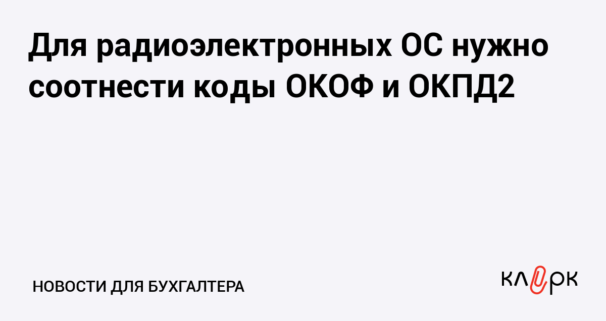 Для радиоэлектронных ОС нужно соотнести коды ОКОФ и ОКПД2