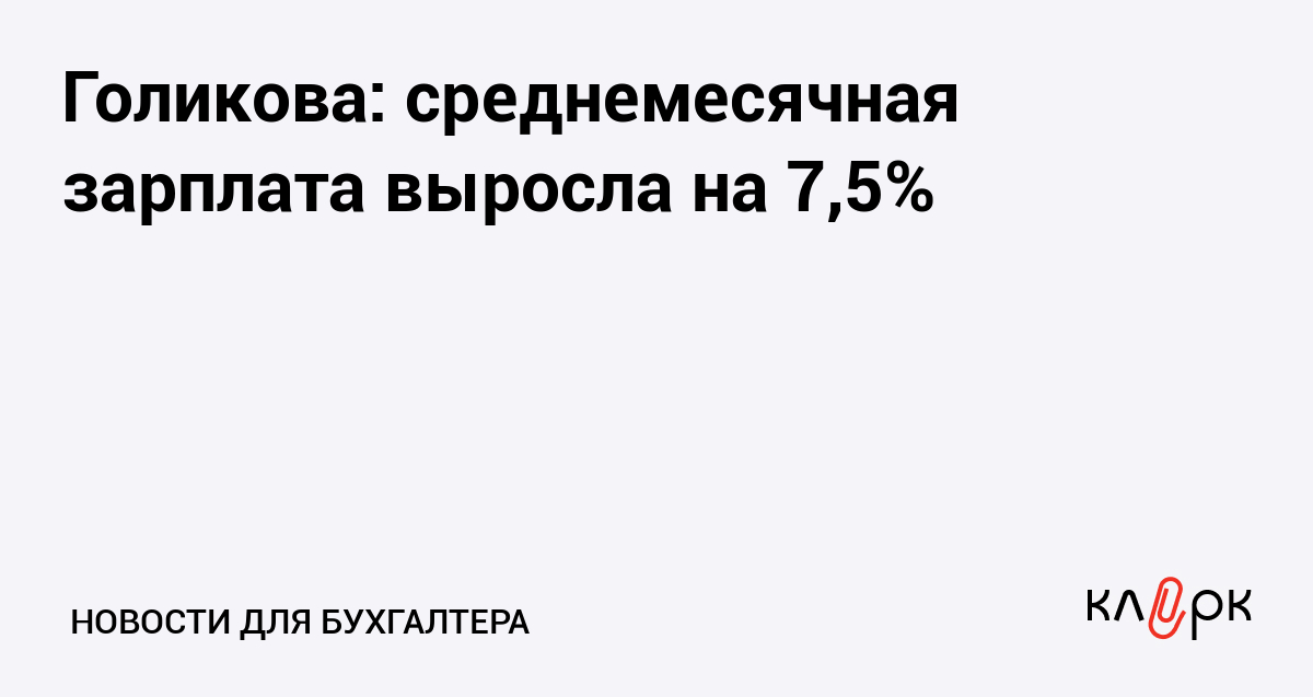 Голикова: среднемесячная зарплата выросла на 7,5%