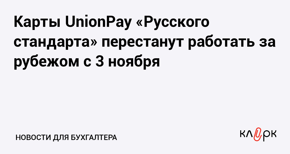 Карты UnionРay «Русского стандарта» перестанут работать за рубежом с 3 ноября