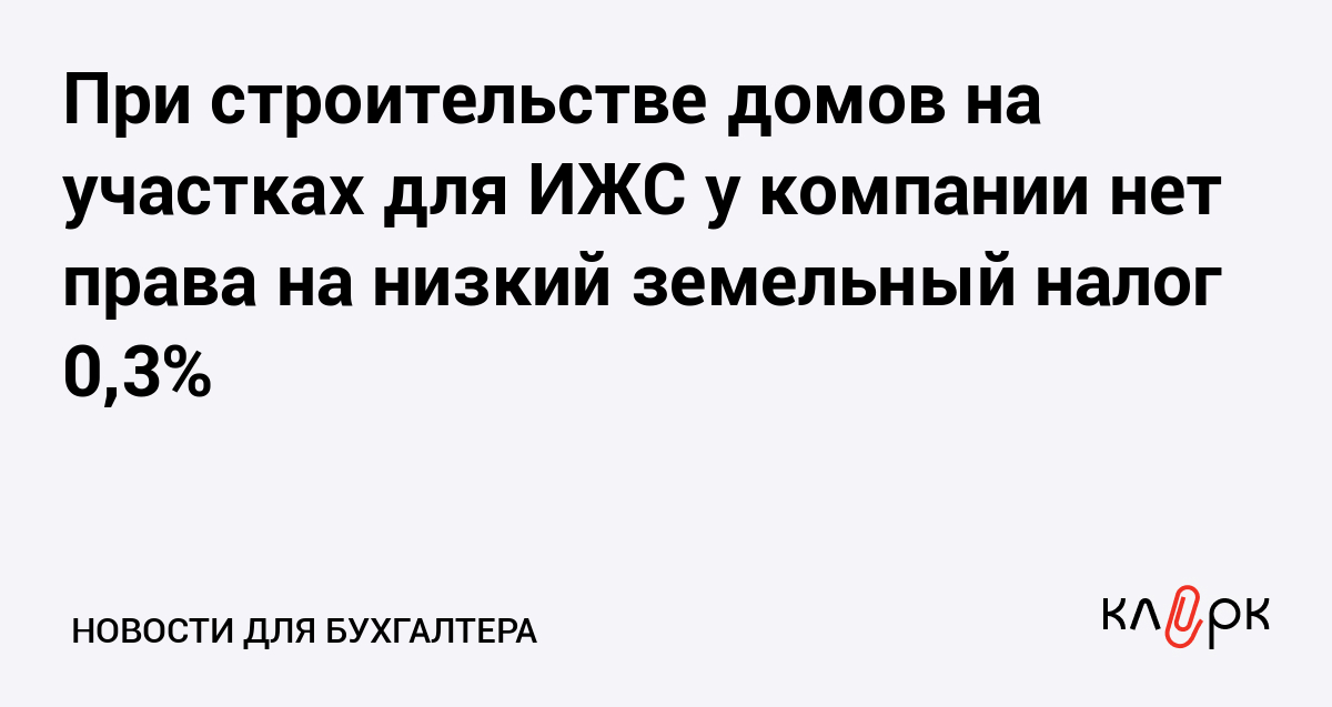 При строительстве домов на участках для ИЖС у компании нет права на низкий земельный налог 0,3%