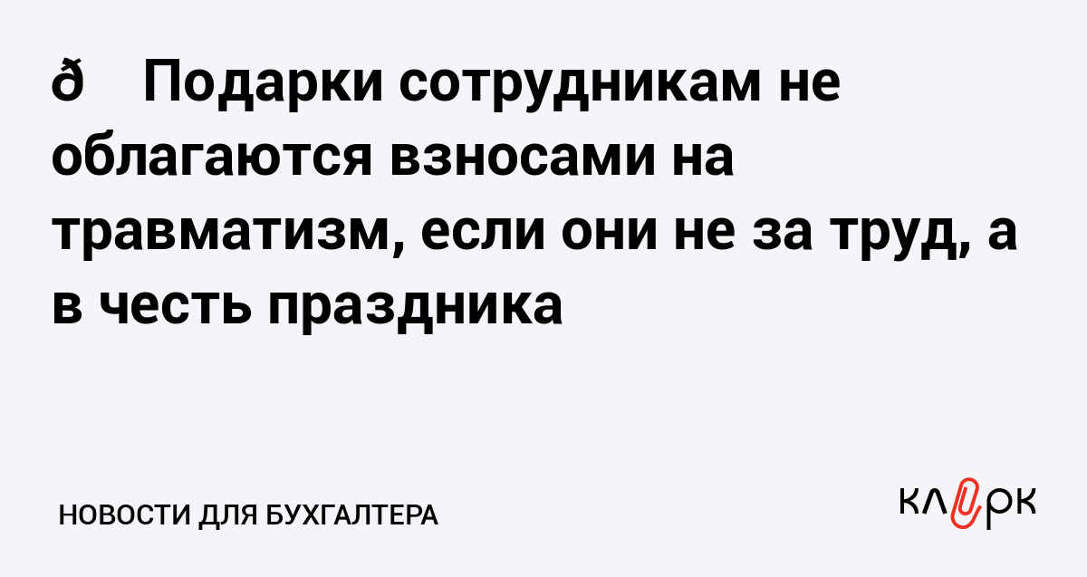🏆 Подарки сотрудникам не облагаются взносами на травматизм, если они не за труд, а в честь праздника