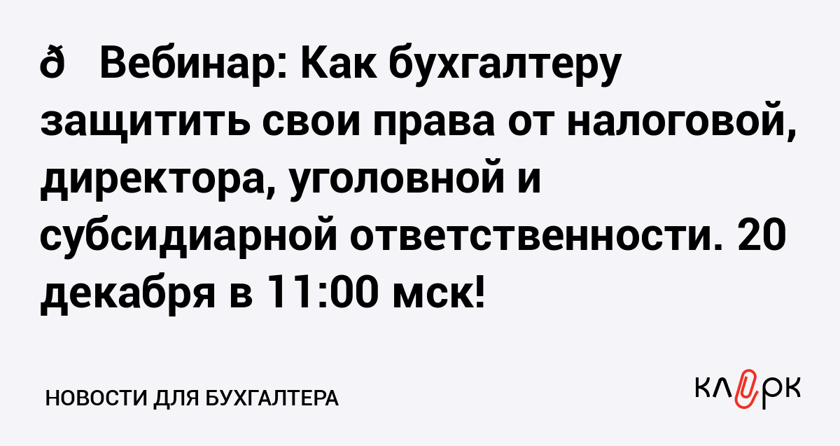 🎓Вебинар: Как бухгалтеру защитить свои права от налоговой, директора, уголовной и субсидиарной ответственности. 20 декабря в 11:00 мск!