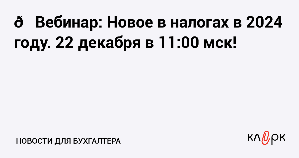 🎓Вебинар: Новое в налогах в 2024 году. 22 декабря в 11:00 мск!