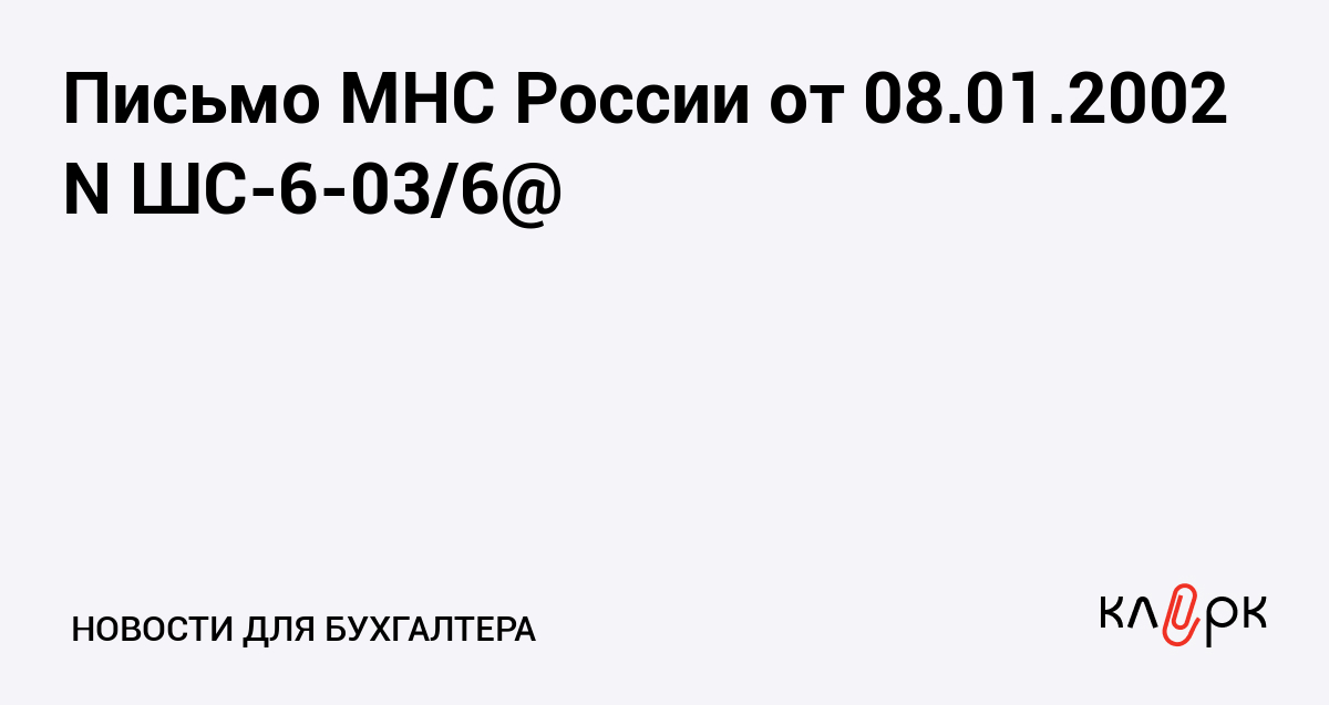 Письмо МНС России от 08.01.2002 N ШС-6-03/6@