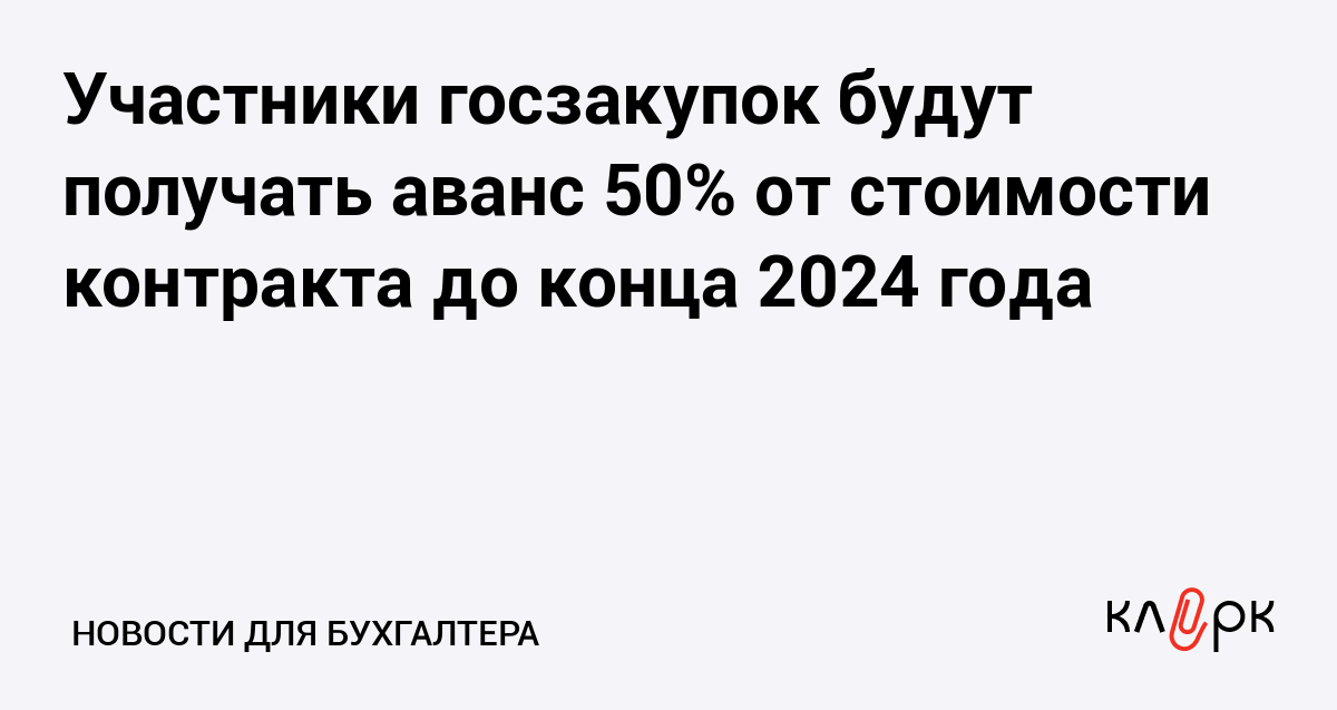 Участники госзакупок будут получать аванс 50% от стоимости контракта до конца 2024 года
