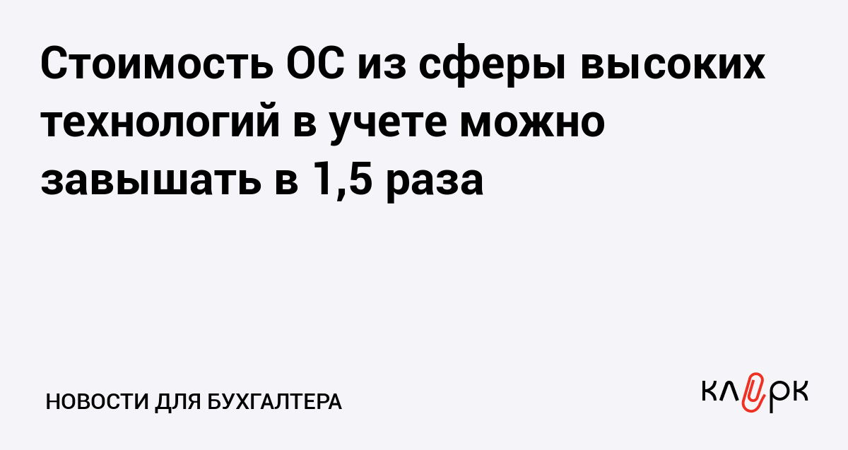Стоимость ОС из сферы высоких технологий в учете можно завышать в 1,5 раза