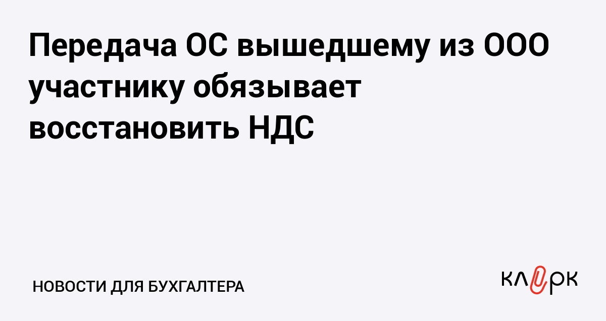 Передача ОС вышедшему из ООО участнику обязывает восстановить НДС