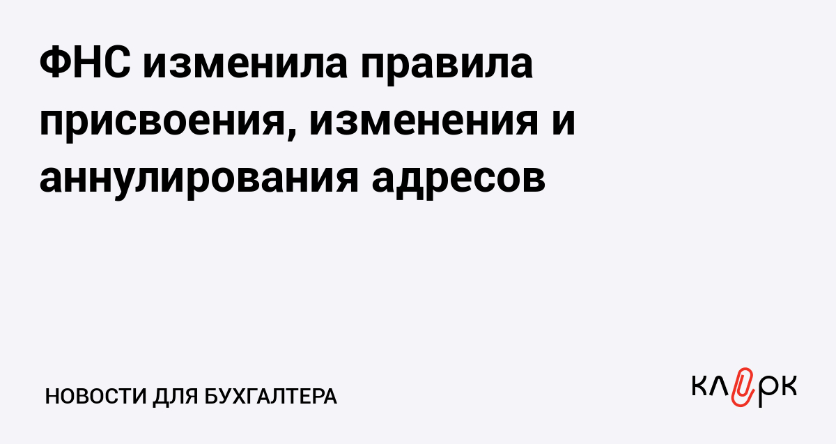 ФНС изменила правила присвоения, изменения и аннулирования адресов