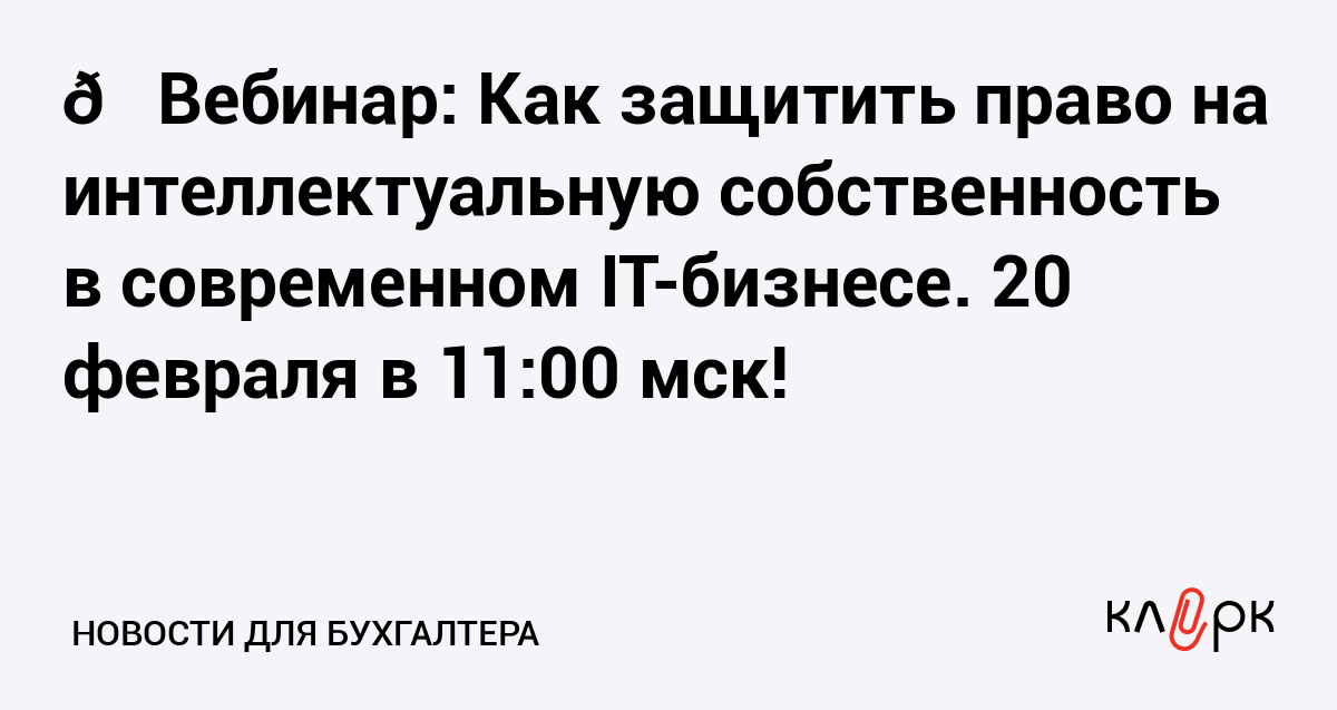 🎓Вебинар: Как защитить право на интеллектуальную собственность в современном IT-бизнесе. 20 февраля в 11:00 мск!