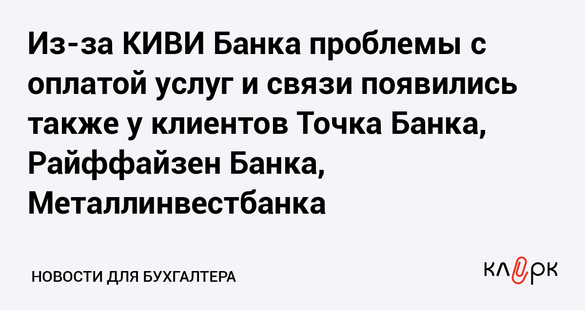 Из-за КИВИ Банка проблемы с оплатой услуг и связи появились также у клиентов Точка Банка, Райффайзен Банка, Металлинвестбанка