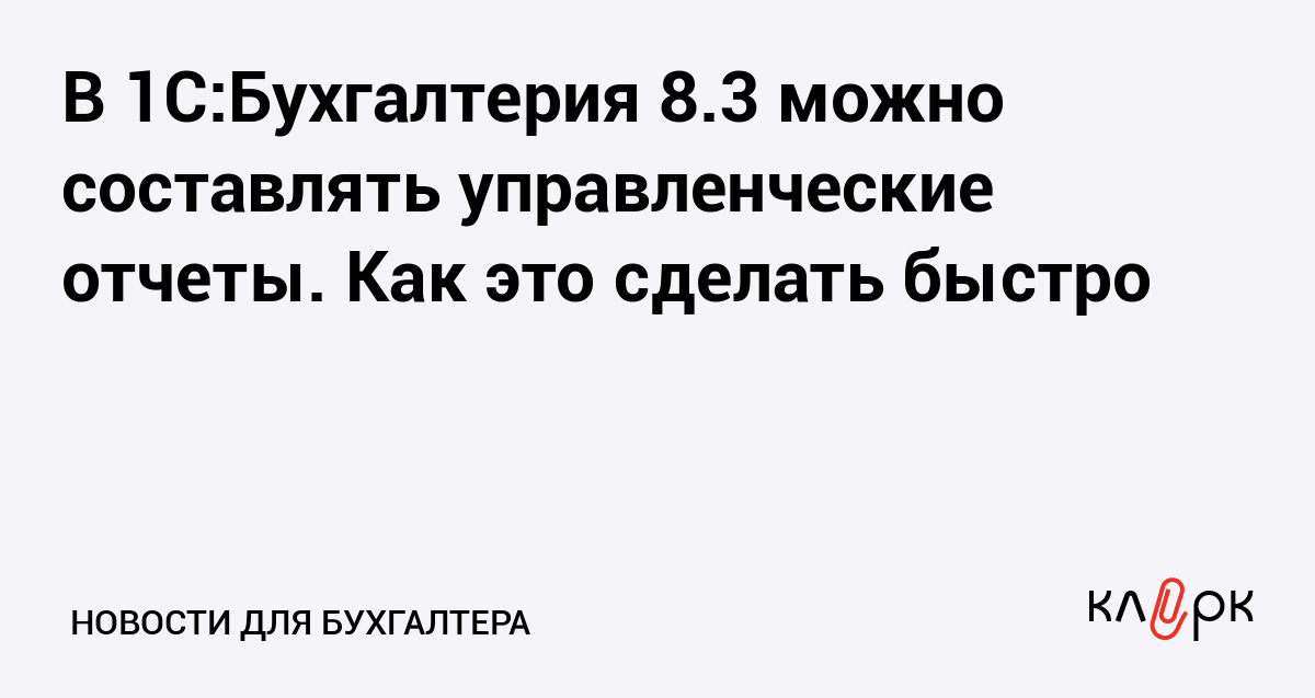 В 1С:Бухгалтерия 8.3 можно составлять управленческие отчеты. Как это сделать быстро