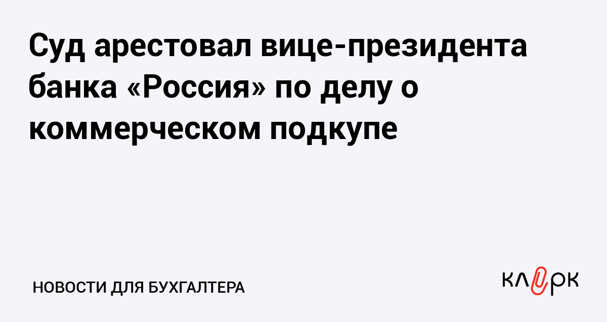 Суд арестовал вице-президента банка «Россия» по делу о коммерческом подкупе