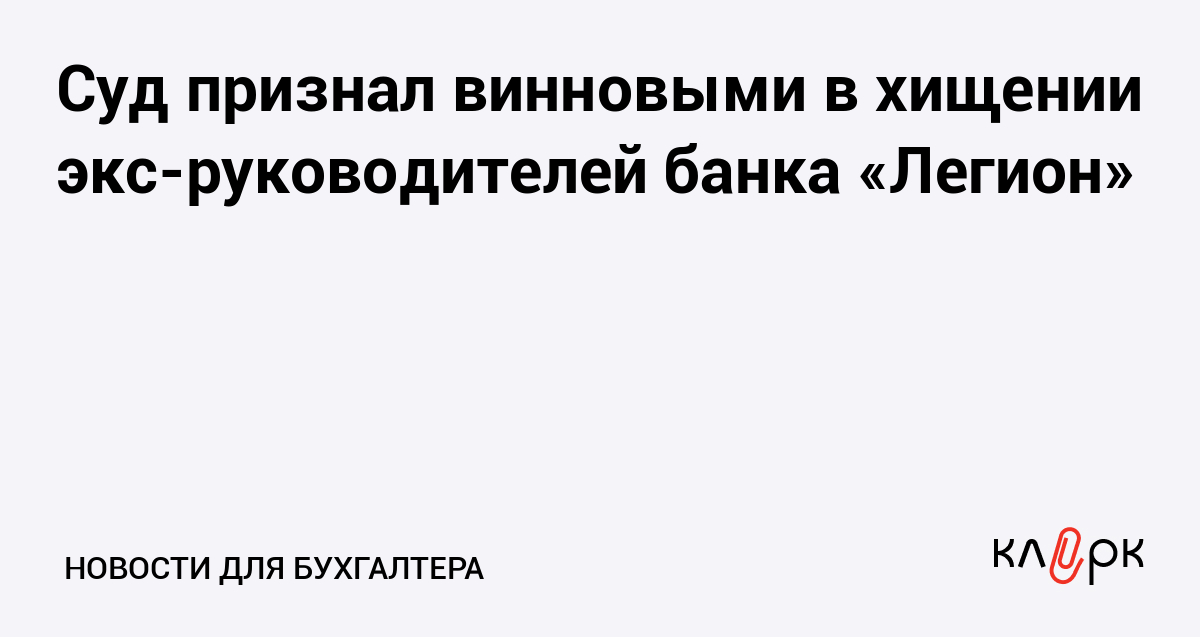 Тверской районный суд Москвы признал экс-руководителей банка «Легион» виновными в хищении банковских средств на сумму 184,5 млн рублей.
