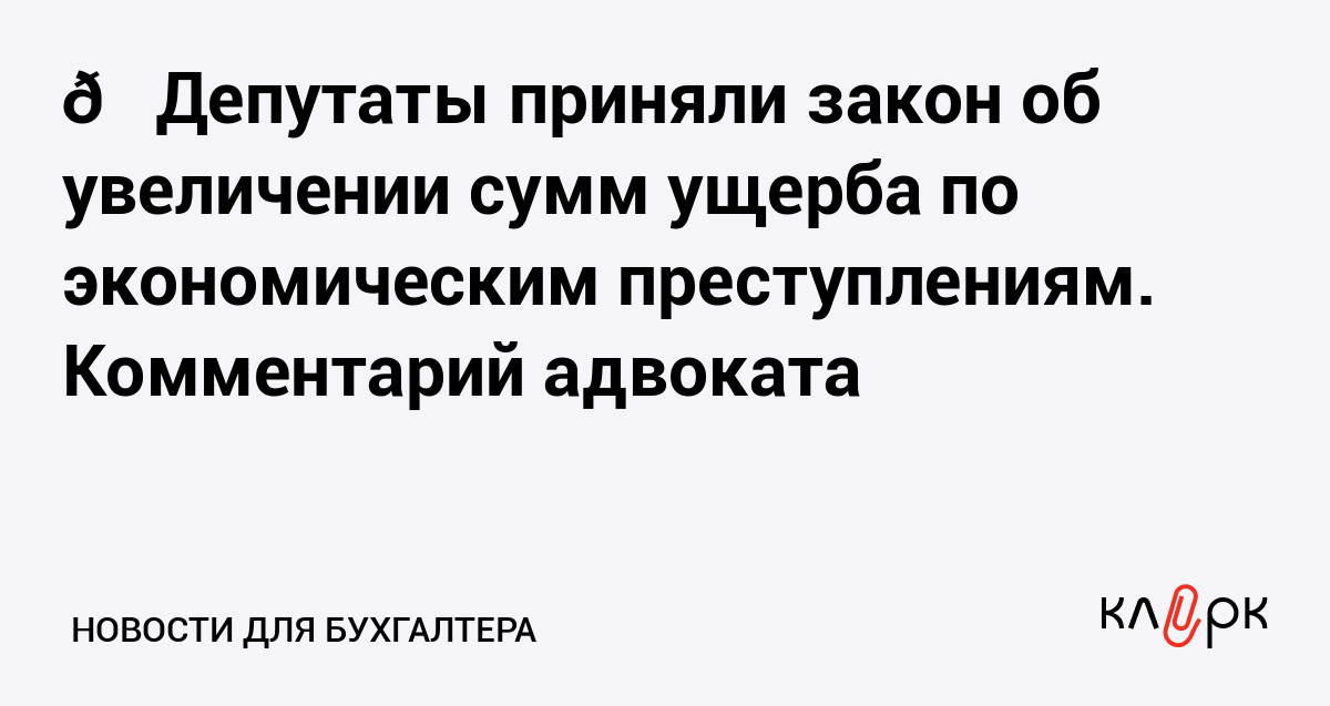 👔Депутаты приняли закон об увеличении сумм ущерба по экономическим преступлениям. Комментарий адвоката