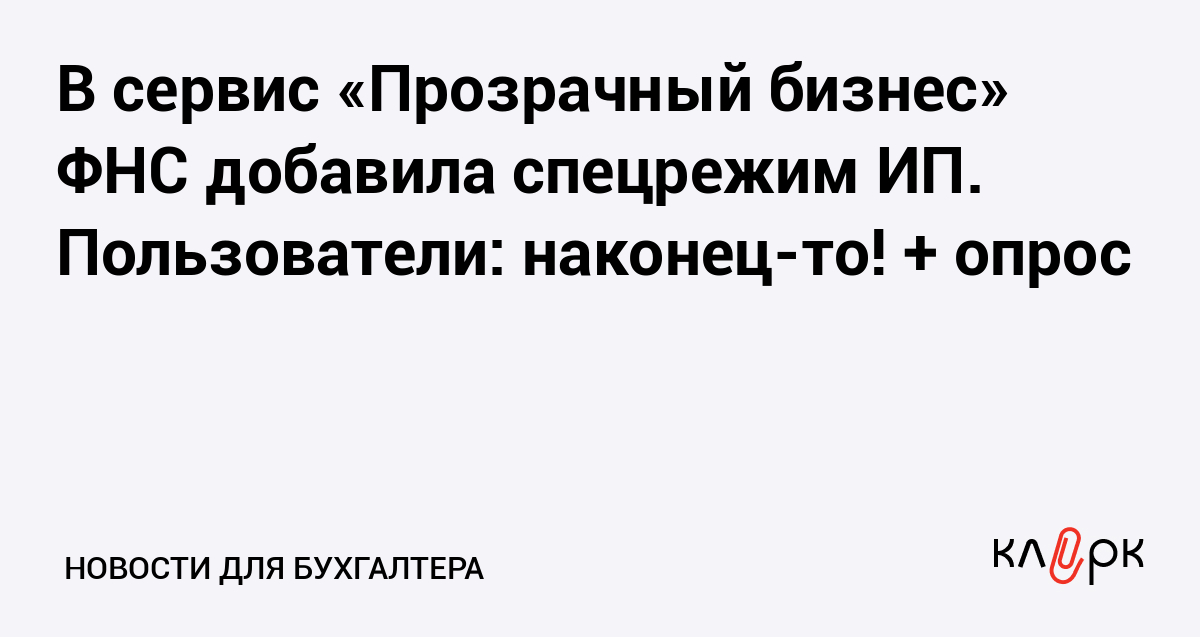 В сервис «Прозрачный бизнес» ФНС добавила спецрежим ИП. Пользователи: наконец-то! + опрос
