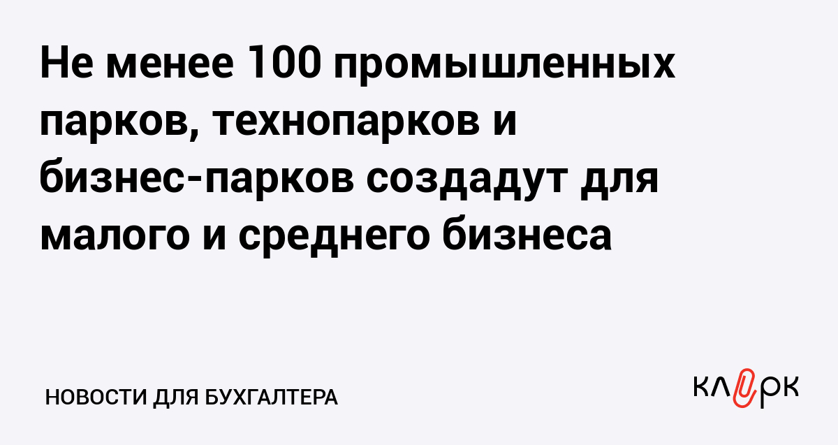 Не менее 100 промышленных парков, технопарков и бизнес-парков создадут для малого и среднего бизнеса