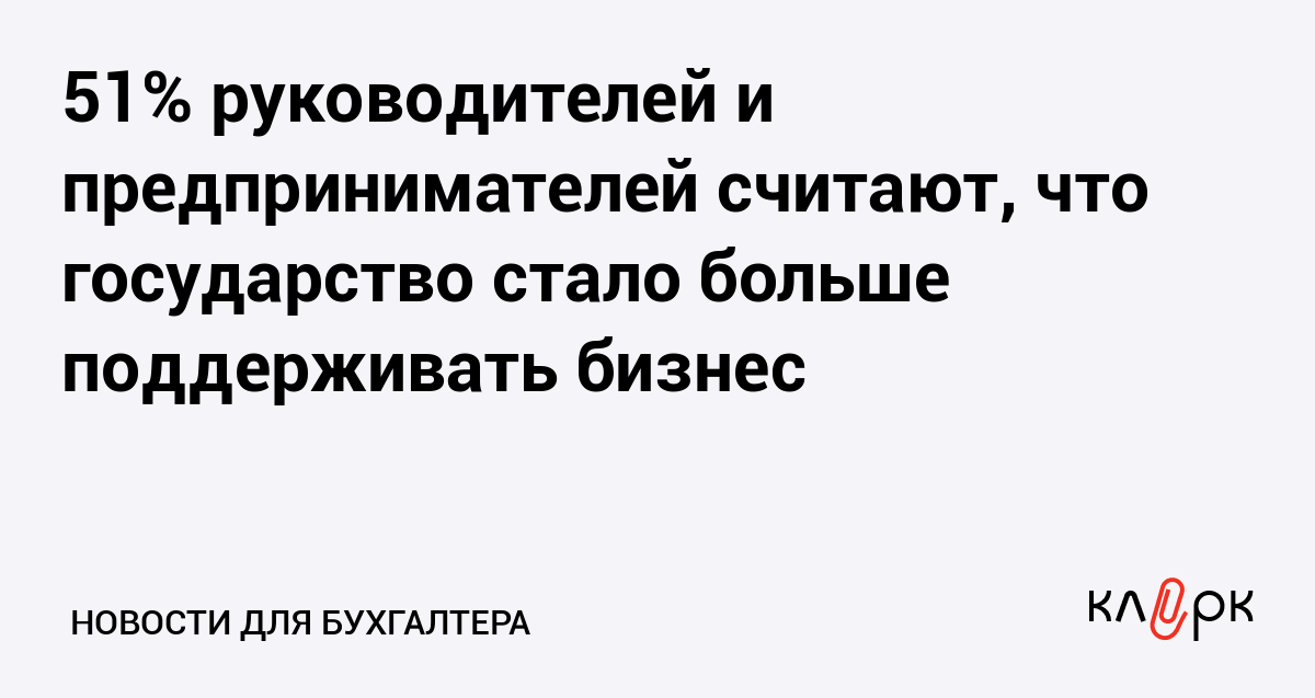 51% руководителей и предпринимателей считают, что государство стало больше поддерживать бизнес