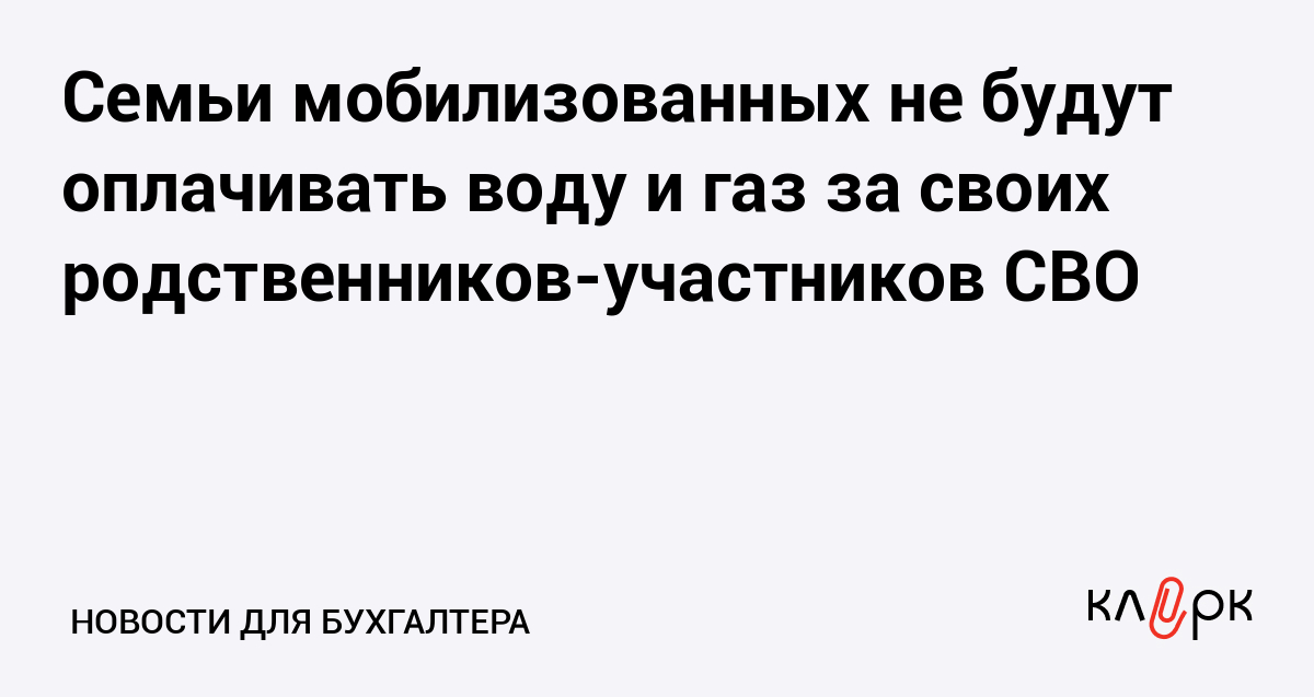 Семьи мобилизованных не будут оплачивать воду и газ за своих родственников-участников СВО