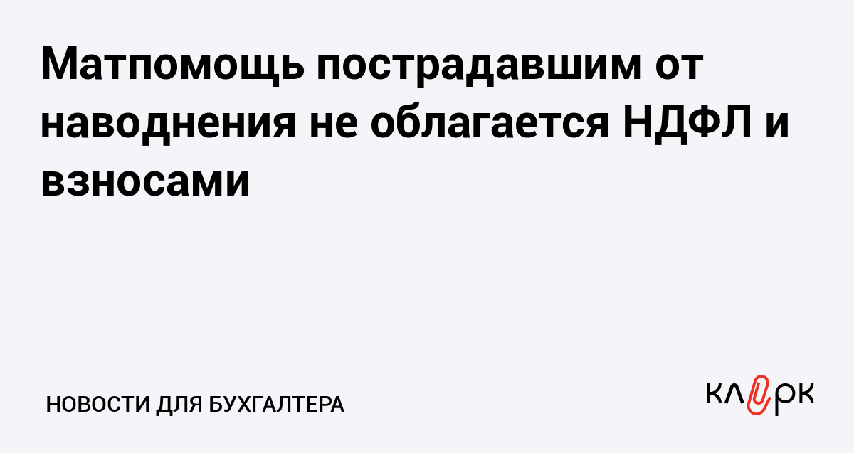 Матпомощь пострадавшим от наводнения не облагается НДФЛ и взносами