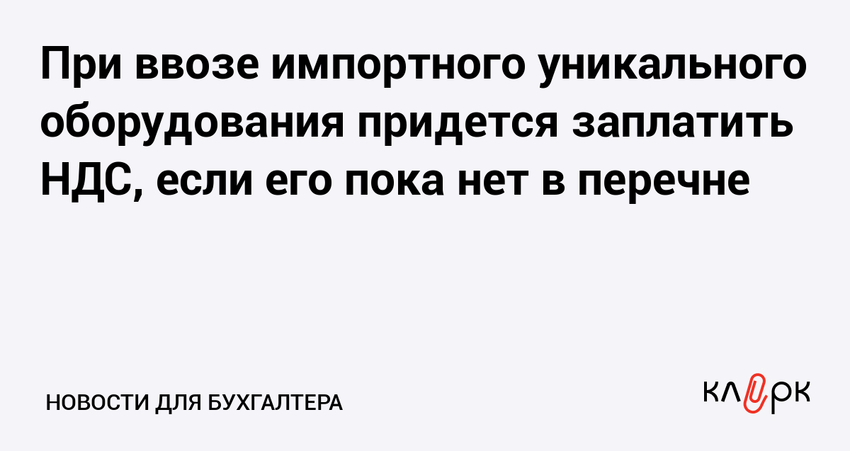 При ввозе импортного уникального оборудования придется заплатить НДС, если его пока нет в перечне