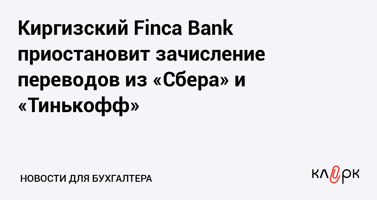 Киргизский Finca Bank приостановит зачисление переводов из «Сбера» и «Тинькофф»