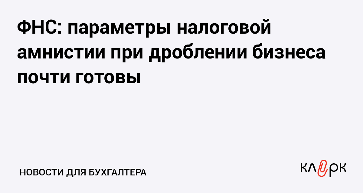 ФНС: параметры налоговой амнистии при дроблении бизнеса почти готовы