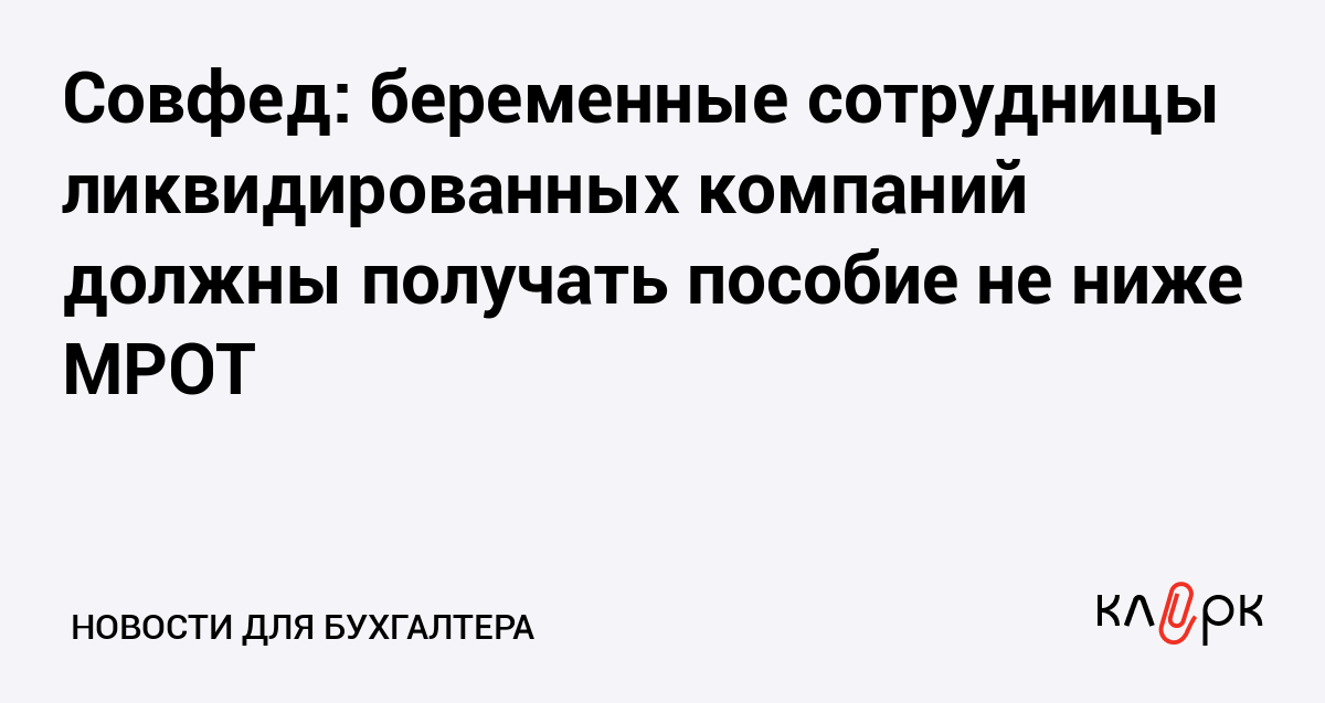 Совфед: беременные сотрудницы ликвидированных компаний должны получать пособие не ниже МРОТ