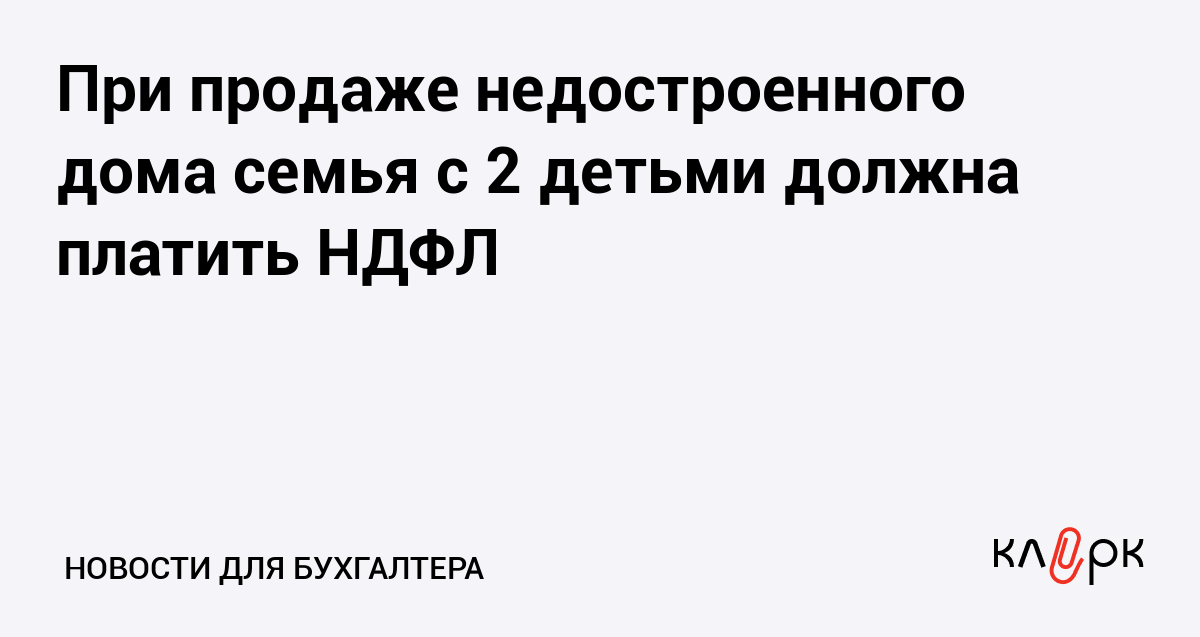 При продаже недостроенного дома семья с 2 детьми должна платить НДФЛ