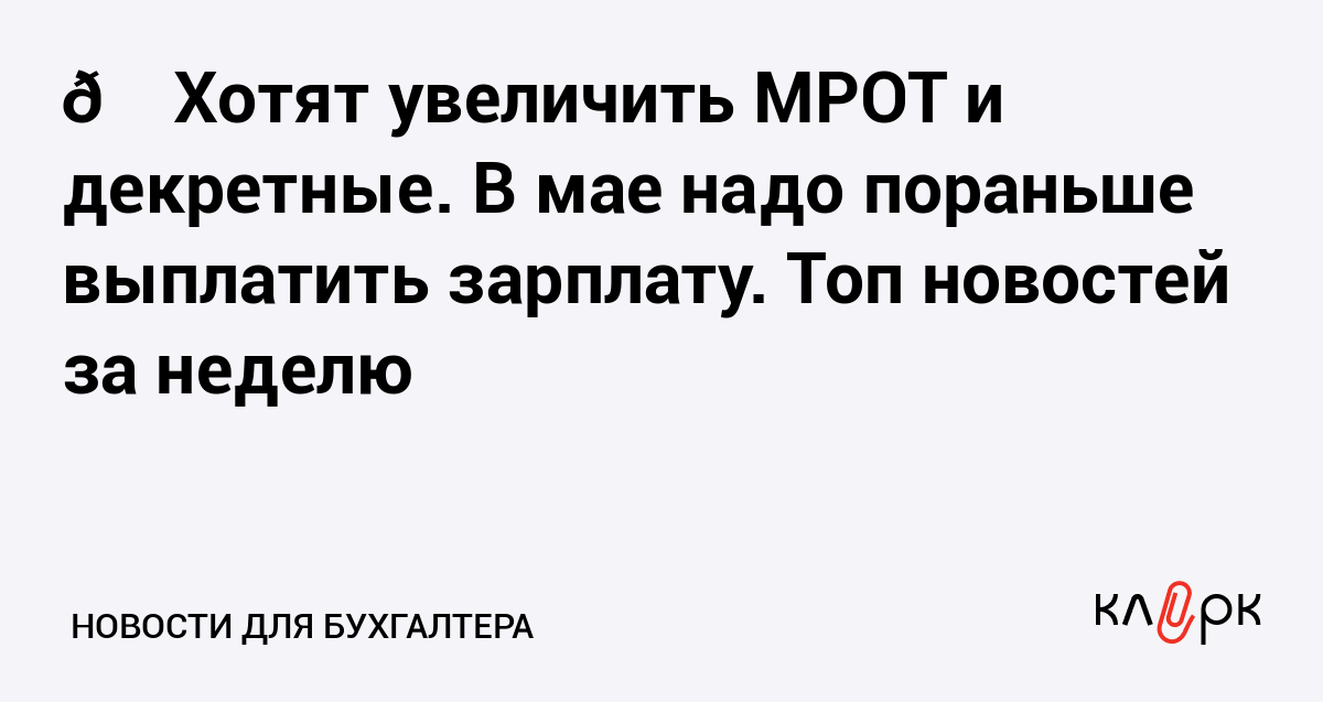 🌞 Хотят увеличить МРОТ и декретные. В мае надо пораньше выплатить зарплату. Топ новостей за неделю