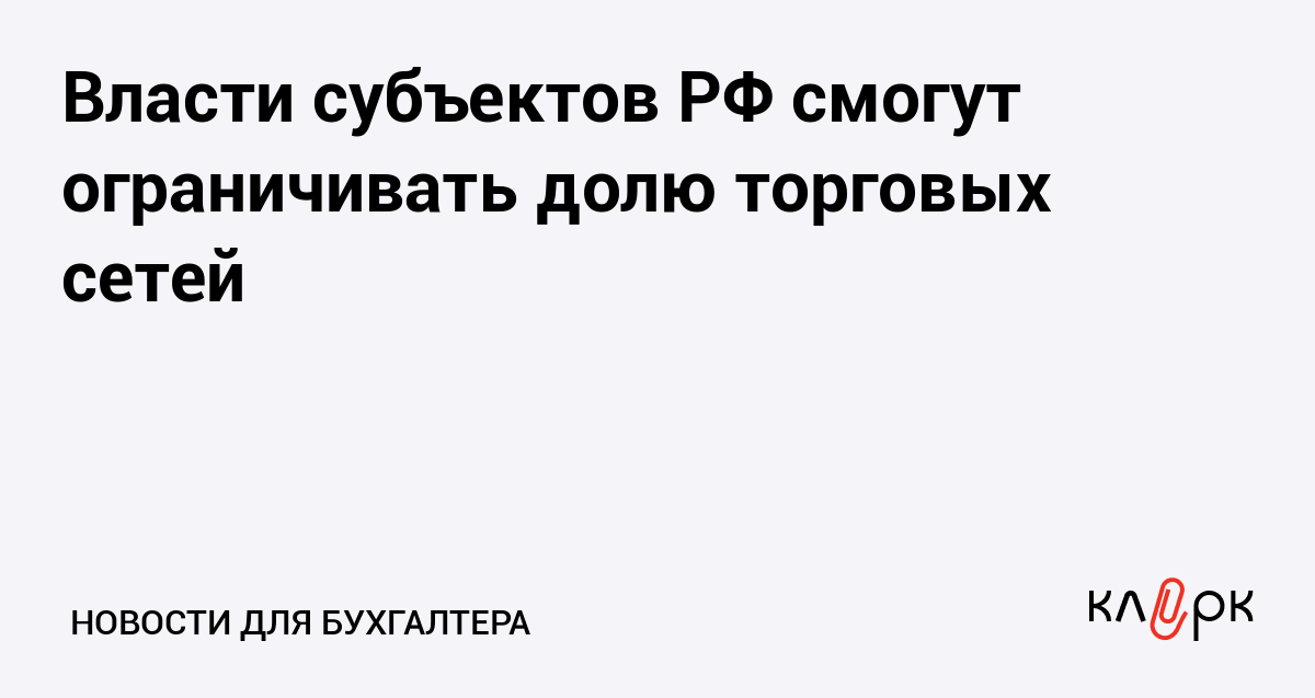 Власти субъектов РФ смогут ограничивать долю торговых сетей