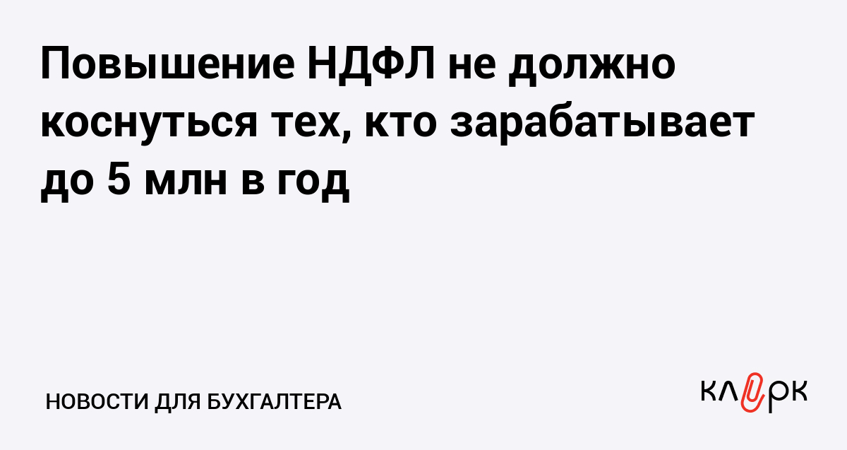 Повышение НДФЛ не должно коснуться тех, кто зарабатывает до 5 млн в год
