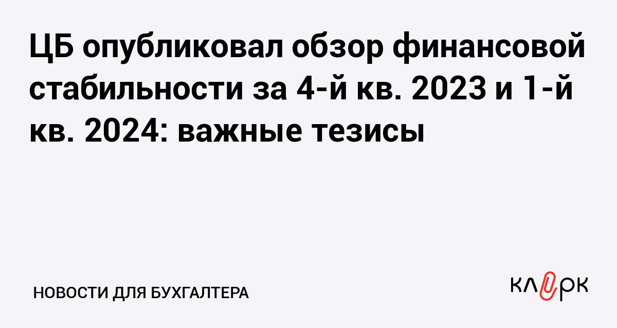 Собрали для читателей «Клерка» важные тезисы из обзора финансовой стабильности ЦБ за четвертый квартал 2023 и первый квартал 2024.