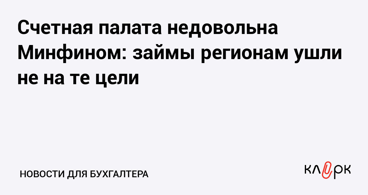 Счетная палата недовольна Минфином: займы регионам ушли не на те цели