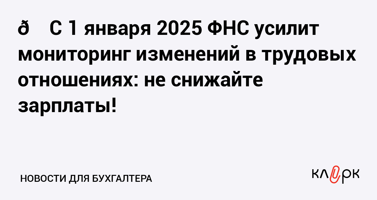 🙅 С 1 января 2025 ФНС усилит мониторинг изменений в трудовых отношениях: не снижайте зарплаты!