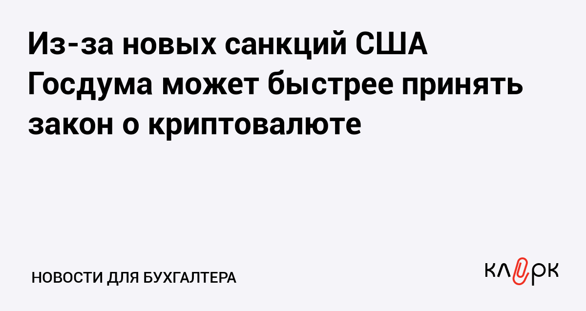 Из-за новых санкций США Госдума может быстрее принять закон о криптовалюте