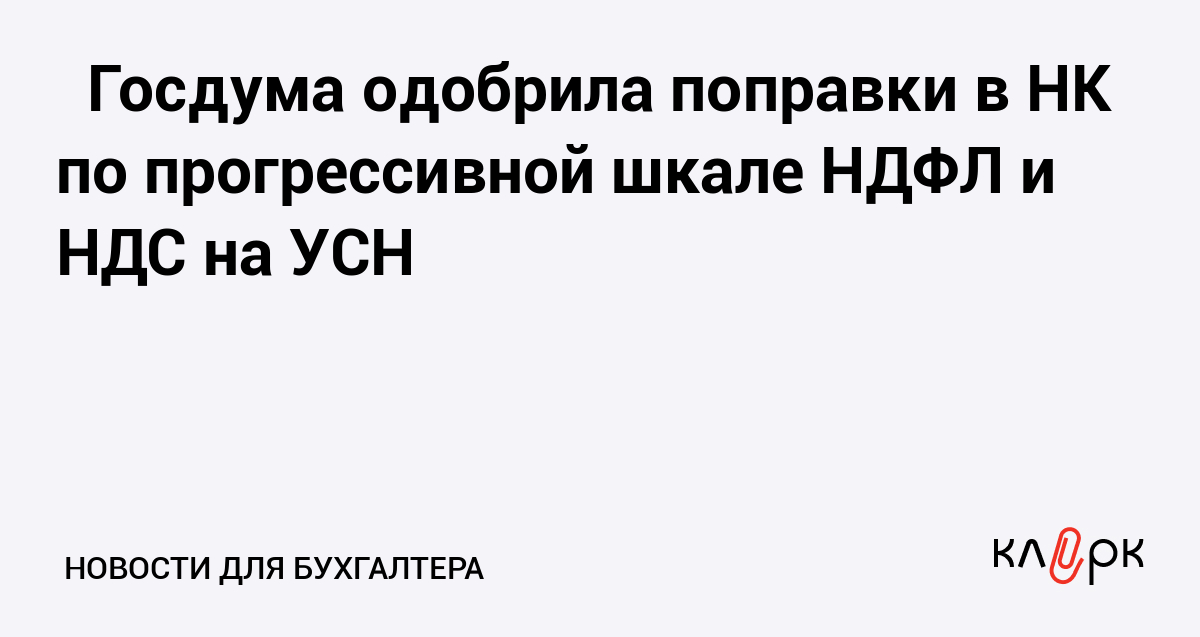 ✅ Госдума одобрила поправки в НК по прогрессивной шкале НДФЛ и НДС на УСН
