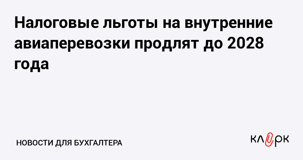 Налоговые льготы на внутренние авиаперевозки продлят до 2028 года