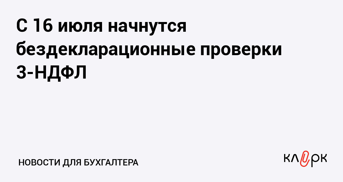 С 16 июля начнутся бездекларационные проверки 3-НДФЛ